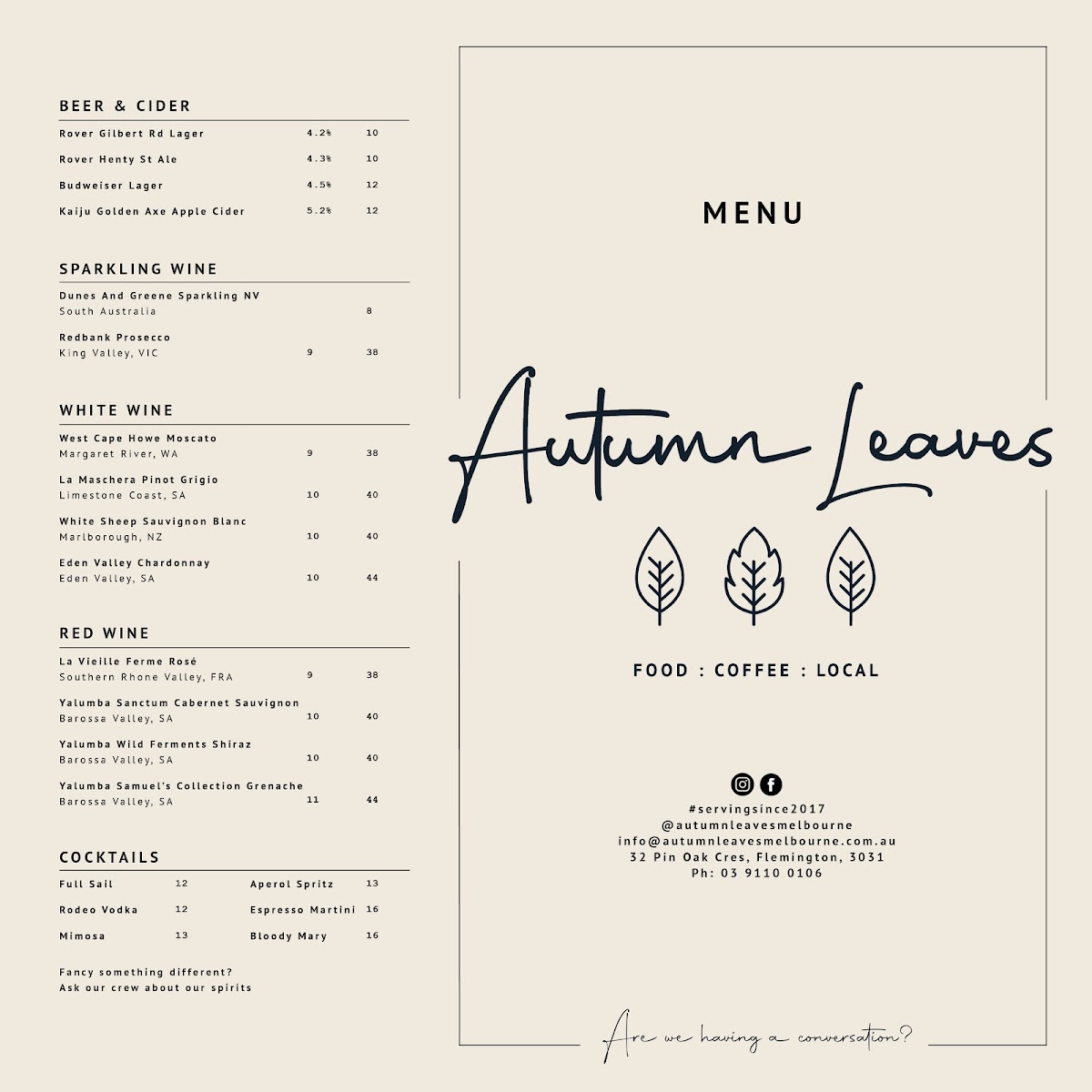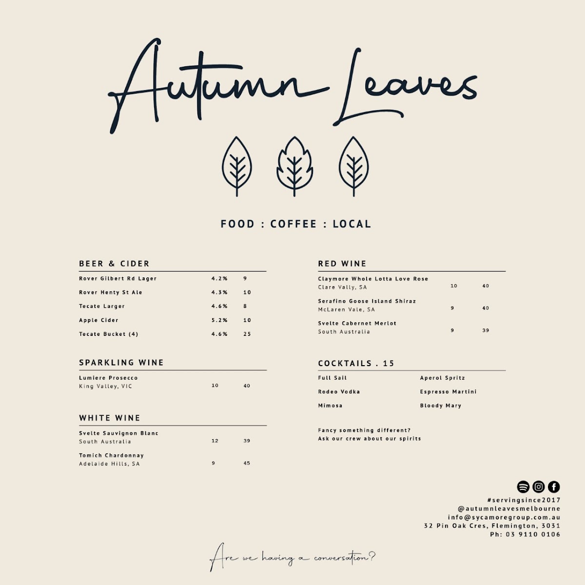 Welcome to Autumn Leaves Melbourne, a charming café nestled in Flemington that invites you to indulge in a delightful culinary experience. The menu boasts an array of enticing beverages, featuring everything from the refreshing Iced Mocha to the aromatic Lavender Latte, perfect for any coffee lover or tea enthusiast.